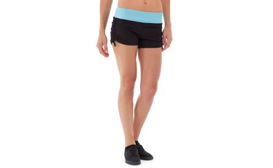 • Black rouched shorts with mint waist.