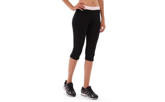 • Black capris with pink waistband.