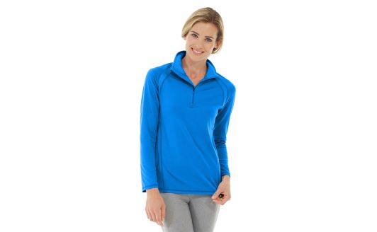 • Bright blue 1/4 zip pullover.