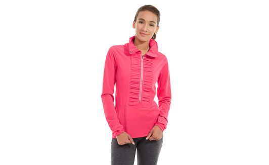 • Deep pink jacket with front panel rouching